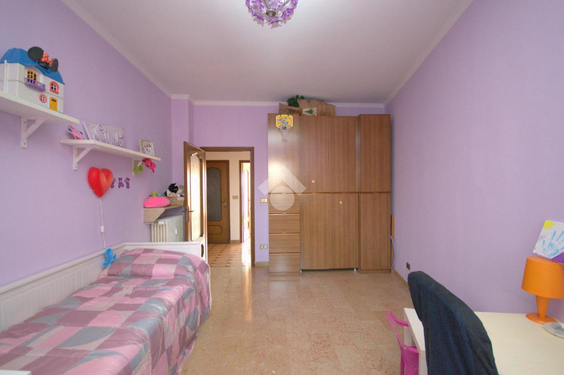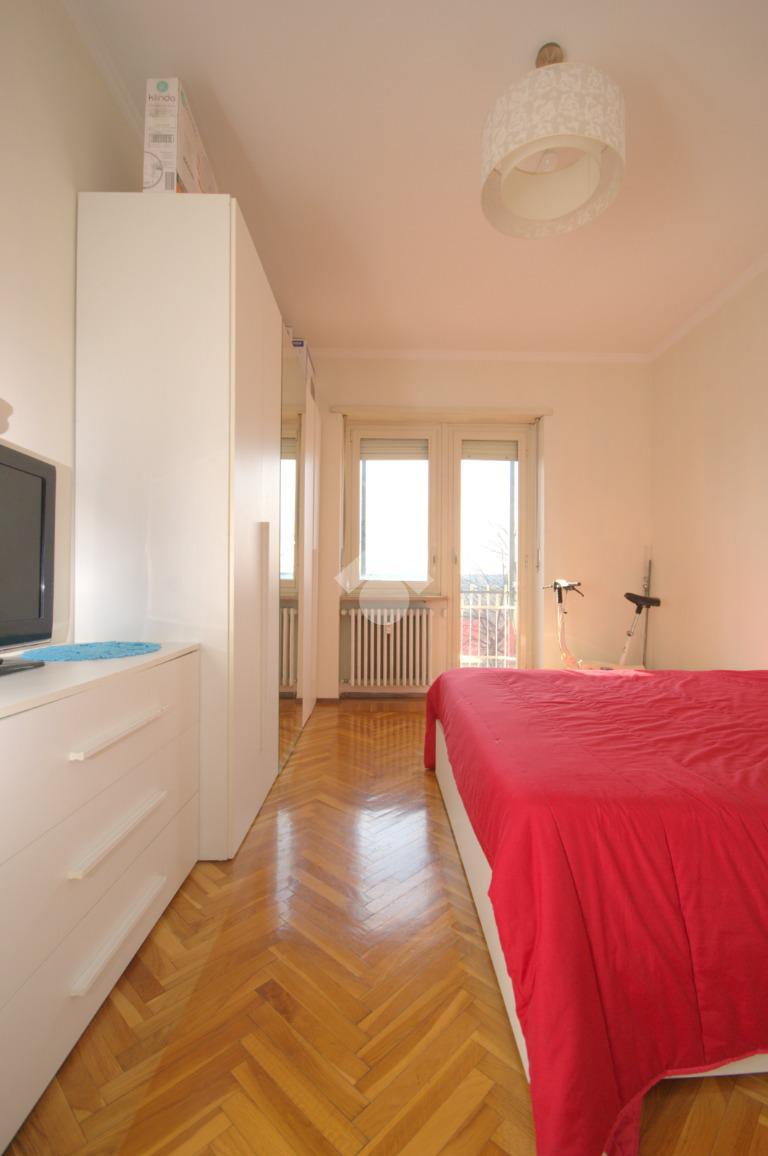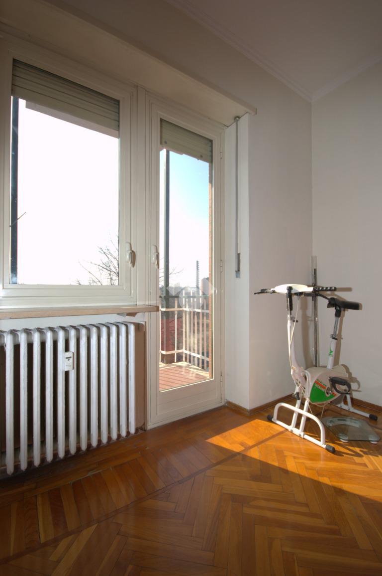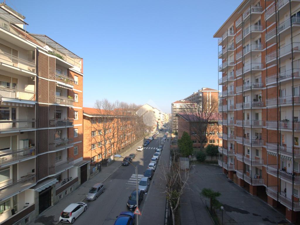 La soluzione si trova in Verolengo in prossimità di via Gubbio, nel cuore di Madonna di Campagna. La zona è servita da diverse attività commerciali, supermercati, scuole ed è circondata da aree verdi pubbliche, tra le quali, il vasto parco Dora. Nelle vicinanze vi sono le fermate dei tram 3 - 9 e del bus 72 – 72/; risulta agevole accedere all’autostrada A55 e la Torino - Caselle che distano solo 8 minuti. Lo stabile, edificato negli anni Settanta, è elevato su undici piani fuori terra ed è dotato di ascensore. L’appartamento si trova al terzo piano. Accedendo dal portoncino blindato d’ingresso, siamo accolti dal disimpegno che divide i vari ambienti della casa. Il soggiorno è dotato di portafinestra la quale permette di accedere al balcone verandato comunicante con una delle due camere, avente affaccio su via Gubbio. Completa la zona giorno un cucinotto, con finestra, all’interno del quale è possibile realizzare una comoda cucina angolare su misura. La zona notte è composta di due camere da letto, generose e semplici da arredare, dotate entrambe di una portafinestra ciascuna. Quest’ultime permettono di accedere al rispettivo balcone, avente affaccio sull’interno cortile la prima, mentre al balcone lato via Verolengo la seconda. Il bagno è funzionale, ha la finestra, la vasca, la doccia, i sanitari utili e i collegamenti per la lavatrice. Infine è presente un comodo ripostiglio, locale utile per mantenere l’ordine all’interno dell’abitazione. La soluzione si presenta in condizioni per lo più originali, con materiali ed elementi tipici dell’epoca di costruzione dello stabile, con particolare riferimento alla pavimentazione in marmo e in parquet in una delle due camere. Il riscaldamento è centralizzato dotato delle termovalvole con i relativi contabilizzatori di calore volti a ottimizzare sia costi che consumi. La tripla esposizione garantisce ariosità in tutta la casa. Completa la proprietà la cantina al piano interrato. L’appartamento sarà disponibile da Luglio 2026.